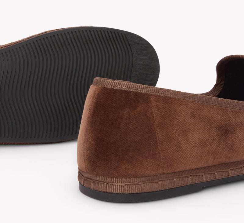 Upper crafted from pure cotton velvet with no synthetic fibers or blends, finished with a breathable natural cotton lining.